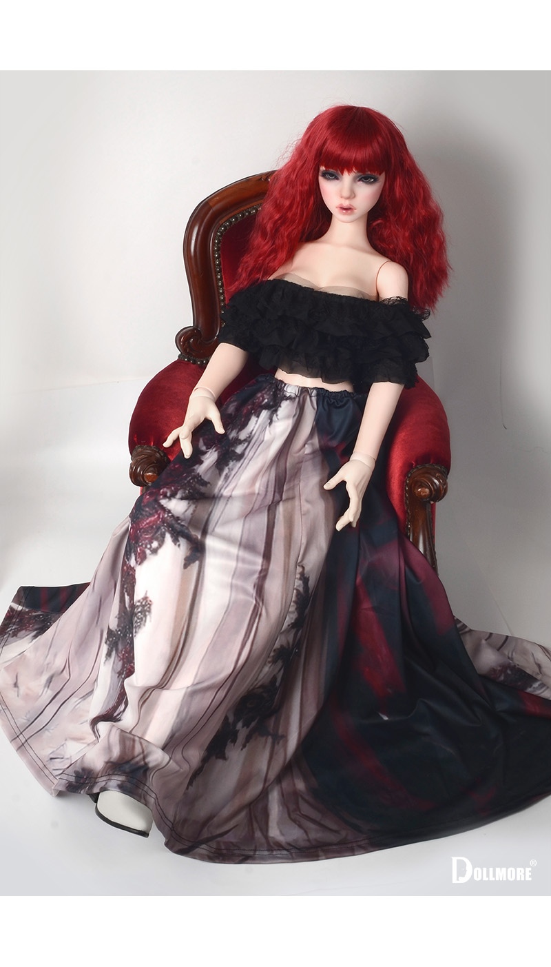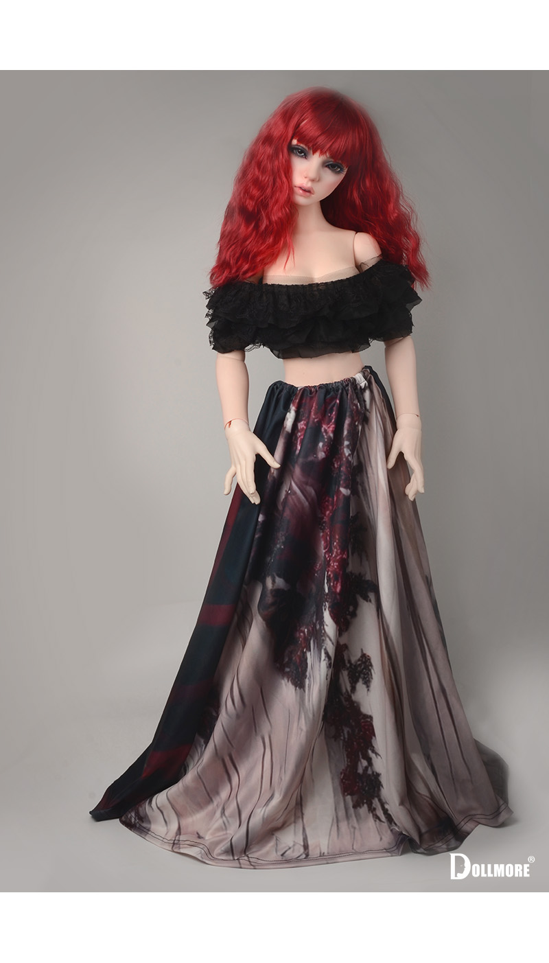 Crimson Long Skirt captures a crimson melody blooming within the darkness.