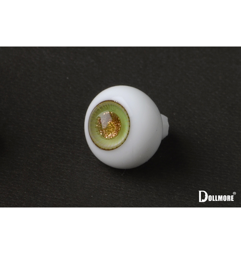 This round-type glass eye features a crystal-clear green base beautifully blended with subtle gold particles,