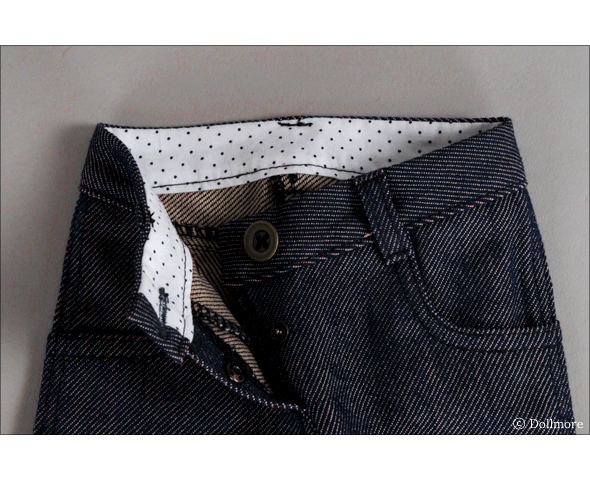 Here is slim fit navy color jeans which will enhance your doll's body line. It has very good fit from front and back side. Very mistic navy color mixing with gold color and it is made of middle thick fabric. There is no elasticity in the jeans, so it may not fit to the doll made by other company. * Included: 1 pants * Model: Dollmore Glamor Model Doll Klode ( Tall: 75cm)