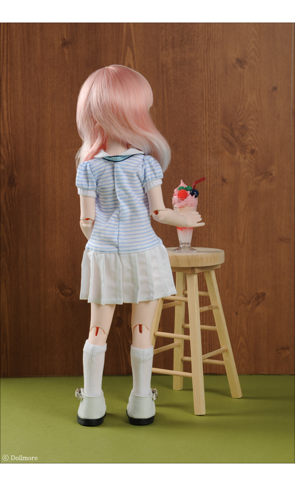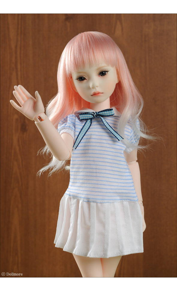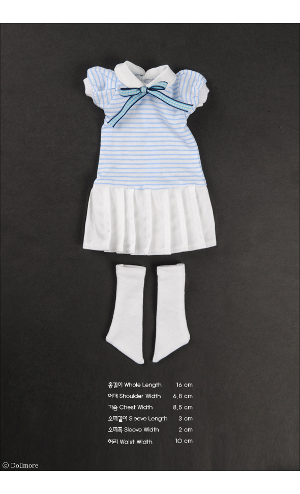 << Narsha - Ecole Dress Set (Sky) >> There is a lovely one-piece dress that looks cool and fresh~ The white and sky blue colors go well together~ It's adorned with round collar, puff sleeve and front blue ribbon in pretty details~ * Included: one-piece dress + knee socks * Mode by Dollmore Narsha friend - Zihu (35cm) 시원한 하늘색 줄무늬와 새하얀 주름치마가 잘 어울리는 원피스 셋트 입니다. 주름스커트가 날씬하고 매우 시원해보이네요~ 원피스의 둥근 플랫카라가 체크무늬 리본과 잘 어울립니다. 반양말이 들어있는 셋트구성의 원피스드레스입니다. * 구성 : 원피스 + 반양말 * 모델 : 돌모아의 나르샤의 친구 지후 (키 : 35cm)