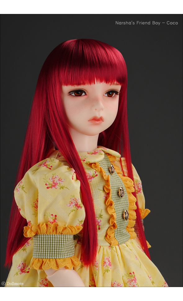 Long and straight wig with a full set of blunt cut bangs~ It feels soft to the touch and its bang is so lovely~ Wig made from hair produced 100% in Korea and used korean technology only. so Its hair doesn't fall out easily and you can find the difference of quality~ * Included: 1 Wig * Model 1: Trinity Doll - Elysia (105cm tall) * Model 2: Dollmore Lusion Doll - Dahlia (80cm tall)