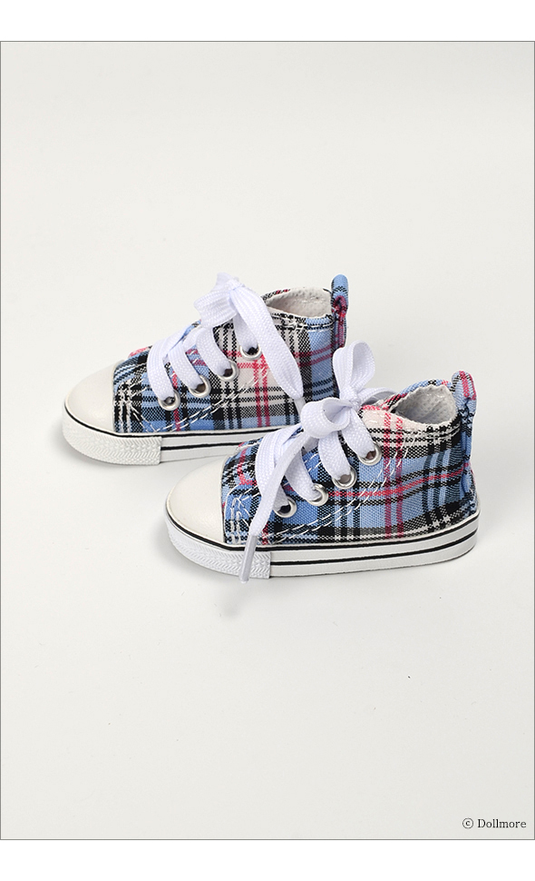 This is a pair of MSD sneakers with cute check pattern. It is made of fabric, so it feels warm and comfortable. Quality of this sneakersis isn't very high, so we sell it with low price. You may find out bond stain at this sneakers. It fits well to casual clothes. * Included : 1 pair of sneakers * Size : 7.5cm X 3.3cm X 5cm * Model : Dollmore Kids Girl Ha Seol (Tall: 43.5 cm/ 17.13 inch) 포근한 느낌의 사랑스런 체크 스니커즈입니다. 원단으로 제작이 되어서 포근하고 편안한 느낌이네요. 저렴한 퀄리티로 그리 본드마감이나 전체적인 마감이 깔끔하지 못하지만 스타일이 이쁘고 사랑스러워요~^^ 캐주얼복장에 매우 잘어울립니다. * Size : 7.5cm X 3.3cm X 5cm * 모델 : 돌모아키즈 하설 (키 : 43cm / 발크기 : 6cm )