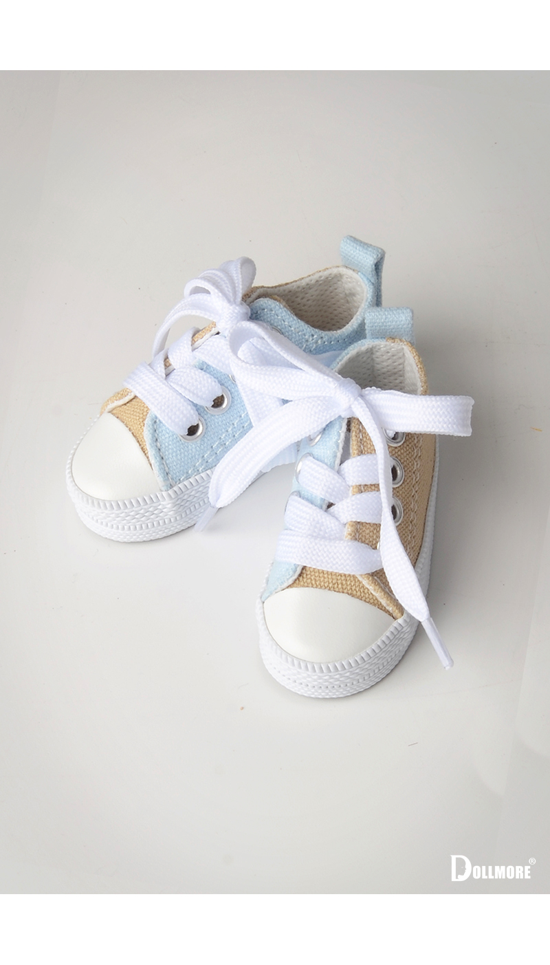 There is simple and lovely sneakers. It fits well to most of MSD dolls. Quality of this sneakers isn't very well, so we sell it with low price. You may find out a little bond stain on the sneakers. It goes well with casual clothes. * Included: 1 pair of shoes * Size: 3 cm * 7.3 cm * Model : Kid Dollmore Boy Geoul ( Tall : 43 cm , Foot Length : 6 cm) 탄탄한 면조직의 사랑스런 스니커즈입니다. 신발의 양쪽 색상이 다른 배색이라서 세련되고 멋지네요. 저렴한 퀄리티로 그리 본드마감이나 전체적인 마감이 깔끔하지 못하지만 스타일이 이쁘고 사랑스러워요~^^ 캐주얼복장에 매우 잘어울립니다. * Size : 3cm X 7.3cm * 모델 : Kid Dollmore Boy - Geoul (키 : 43cm /발크기 : 6cm)