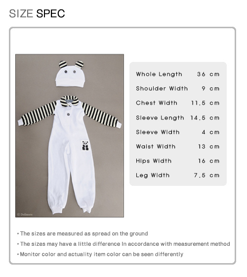 This comfortable spacesuit is made of cotton. It is comfortable to wear. It's also great for storing your baby for a while. The baby-inspired design makes it comfortable to wear as indoor clothing. The cuffs and ankles are shirred, making it a perfect fit for slightly older children. This is a very practical outfit. * Includes: All-in-one + hat * Model: Dollmore Kids Paran (Height: 43cm, 17 inch) 20수면으로 만들어진 편안한 우주복입니다. 면으로 만들어져 착용감이 좋고 아이를 잠시 보관하는 데도 좋습니다. 아기를 연상시키는 디자인으로 편안하게 실내복으로 입어도 좋습니다. 손목과 발목을 시보리처리하여 조금더 큰 타사의 아이에게도 잘 맞습니다. 매우 실용적인 의상입니다. * 구성 : 올인원 + 모자 * 모델 : 돌모아키즈 파란, 이삭(키 : 43cm)