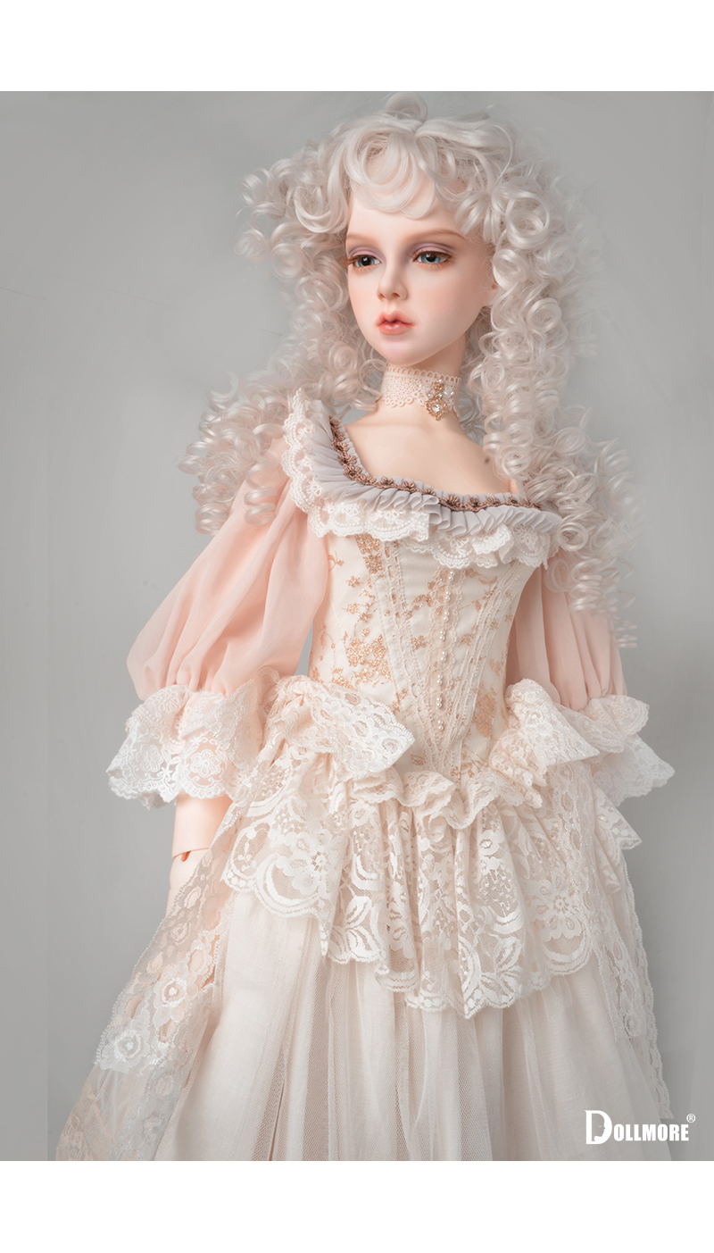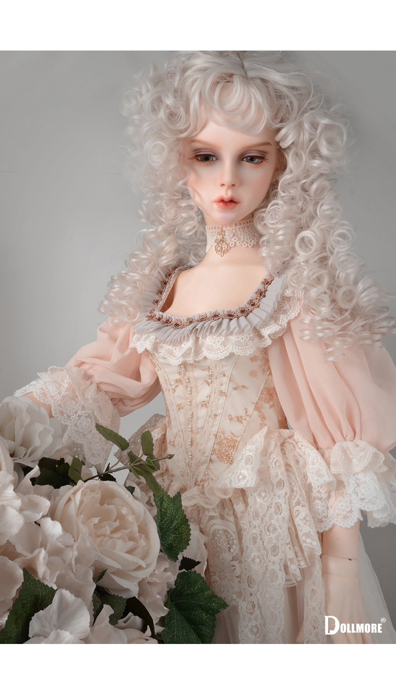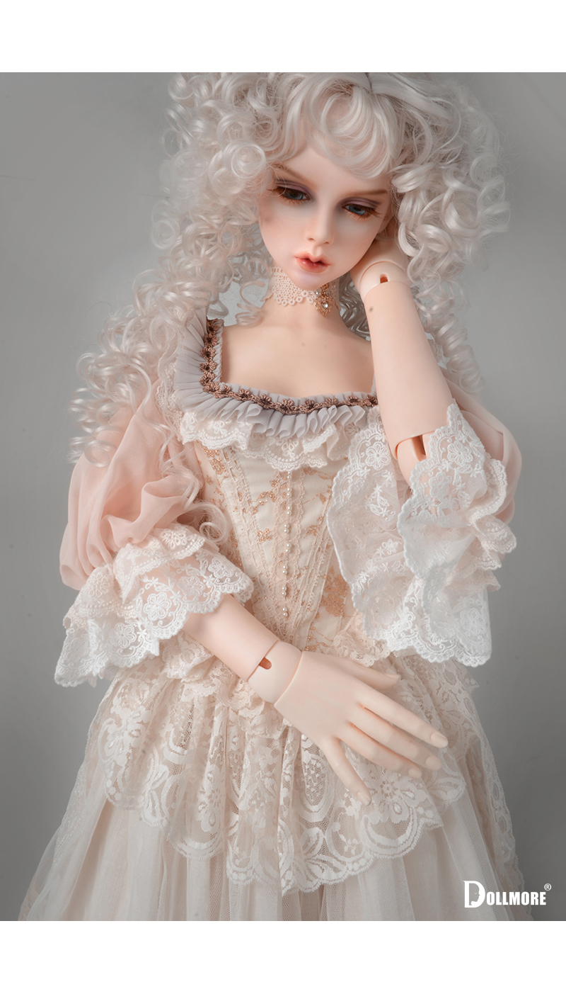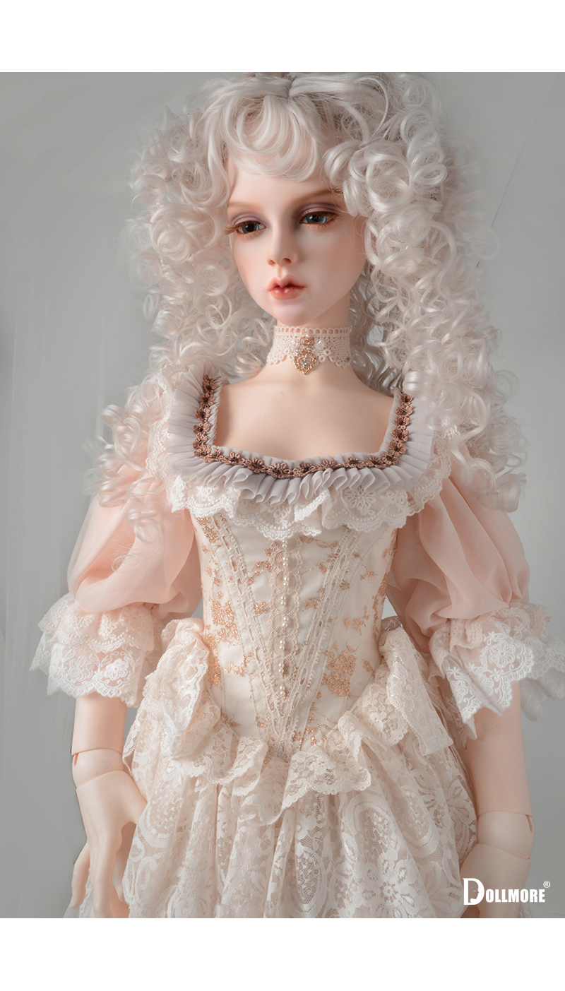 A modern reinterpretation of a classic European aristocratic silhouette, this elegant dress set exudes the romantic allure of a bygone era. Soft pastel beige and rose tones blend together gracefully, evoking the nostalgic beauty of an aged rose in full bloom. The bodice features intricate embroidery and delicate bead embellishments in a corset-inspired design, accentuated by ruffled lace along the neckline that enhances its refined elegance. The voluminous chiffon puff sleeves capture the light softly, emphasizing femininity, while the lace cuffs complete the timelessly graceful look. The skirt is composed of multiple layers of lace and fine tulle, creating a luxurious and flowing silhouette that moves like a gentle whisper. A subtle apricot-toned underlayer paired with cream lace overlays adds warmth and depth, giving the entire ensemble a soft, romantic radiance. * Components: Main dress, lace choker * Model: Trinity Doll F – Dress Up Charlotte – LE20 (Height: 105 cm / approximately 41.3 inches; Head circumference: 13–14 inches) * Features: Premium lace and hand-embroidered bead embellishments / Classic Rococo style / Elegant antique rose-tone color palette True to its name, “Roseline Elegy” captures both the sorrow and beauty of a rose that blooms timelessly within the passage of time. ※ Note: This dress fits all bust sizes of the Trinity Doll F body beautifully. ================================================================================================ 고전적인 유럽 귀족풍 실루엣을 현대적으로 재해석한 드레스 세트입니다. 파스텔 베이지와 로즈빛이 은은하게 어우러져, 마치 오래된 장미의 추억처럼 고혹적인 분위기를 자아냅니다. 상체는 섬세한 자수와 비즈 장식이 어우러진 코르셋 스타일로, 목선을 부드럽게 감싸는 러플 디테일이 우아함을 더합니다. 풍성한 쉬폰 퍼프 소매는 투명한 빛을 머금어 여성스러움을 극대화하며, 끝단의 레이스가 클래식한 아름다움을 완성합니다. 하단의 스커트는 여러 겹의 레이스와 망사로 이루어진 풍성한 레이어 구조로, 움직임에 따라 부드럽게 흩날리는 실루엣이 드라마틱한 인상을 줍니다. 은은한 살구빛 톤의 안감 위에 얹힌 크림 레이스가 로맨틱한 조화를 이루며, 전체적으로 따뜻하고 우아한 빛을 발합니다. * 구성품: 드레스 본체, 레이스 초커. * 모델: Trinity Doll F - Dress Up Charlotte - LE20(Height: 105 cm / Head circumference: 13–14 inch) * 특징: 고급 레이스와 비즈 수공예 장식 / 클래식 로코코 스타일 / 엔틱 로즈톤의 우아한 색조 이 드레스는 ‘로잘린 엘레지(Roseline Elegy)’라는 이름처럼, 시간 속에 피어난 장미의 슬픔과 아름다움을 동시에 담은 작품입니다. ※ 참고: 본 드레스 세트는 트리니티 돌의 가슴 사이즈에 관계없이 모두 아름답게 착용 가능합니다.
