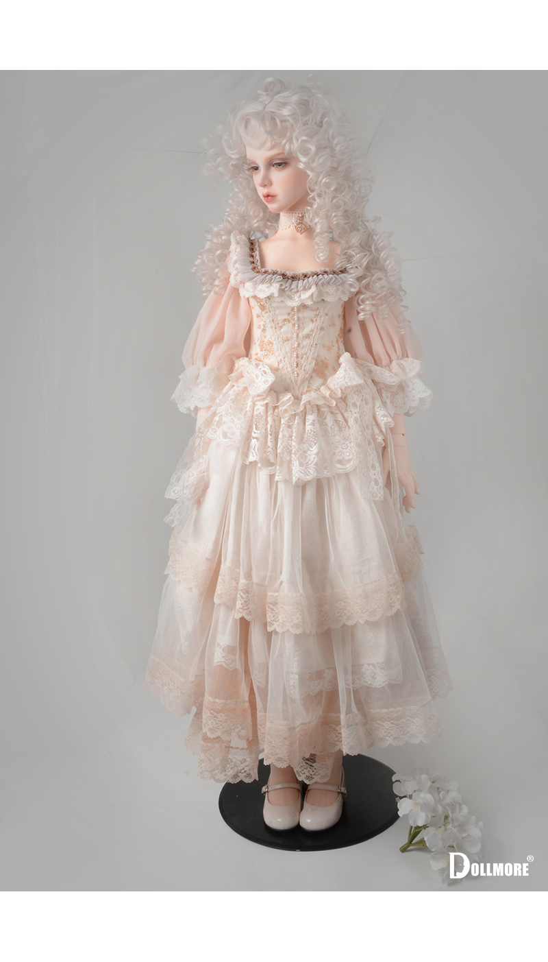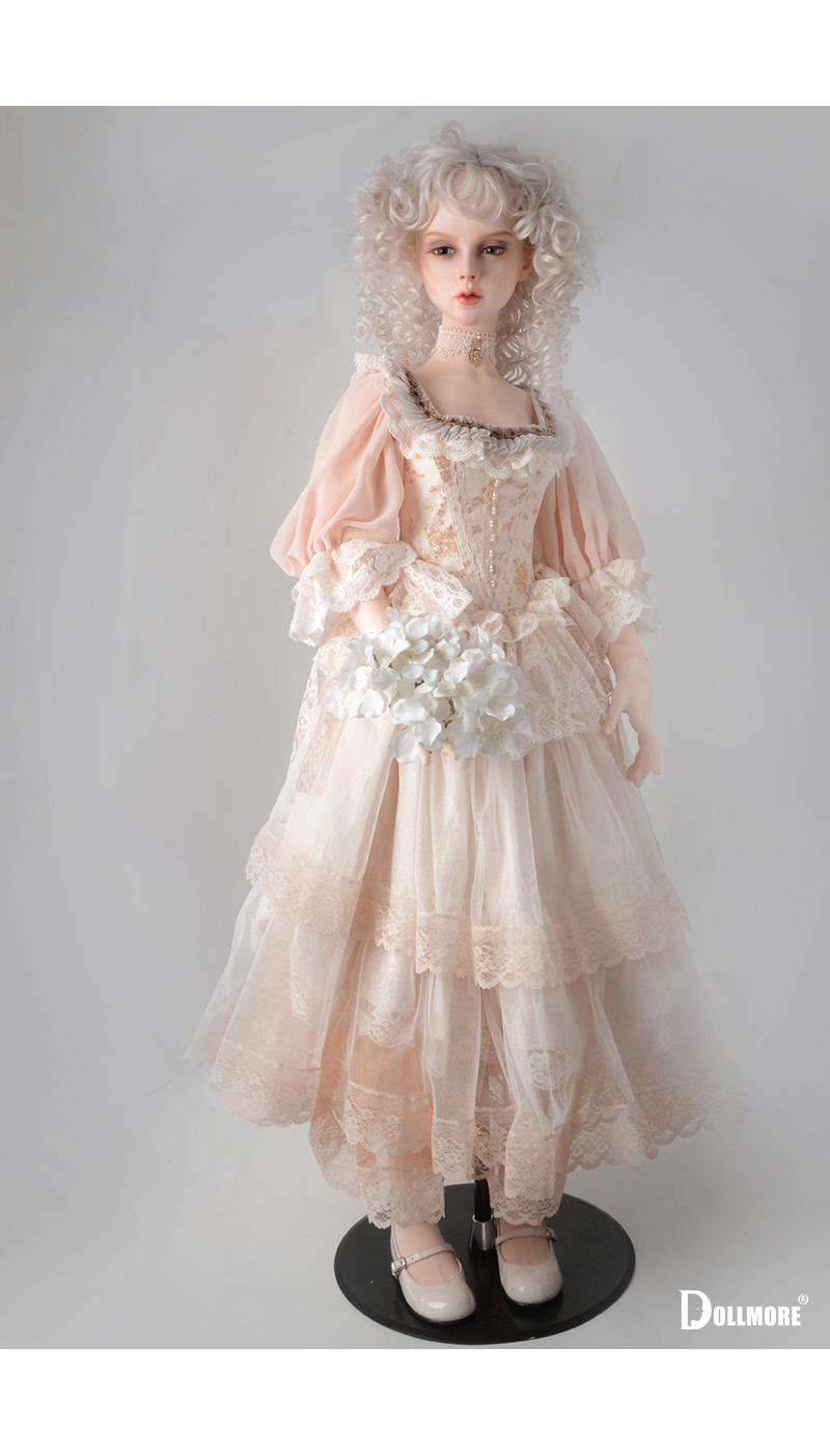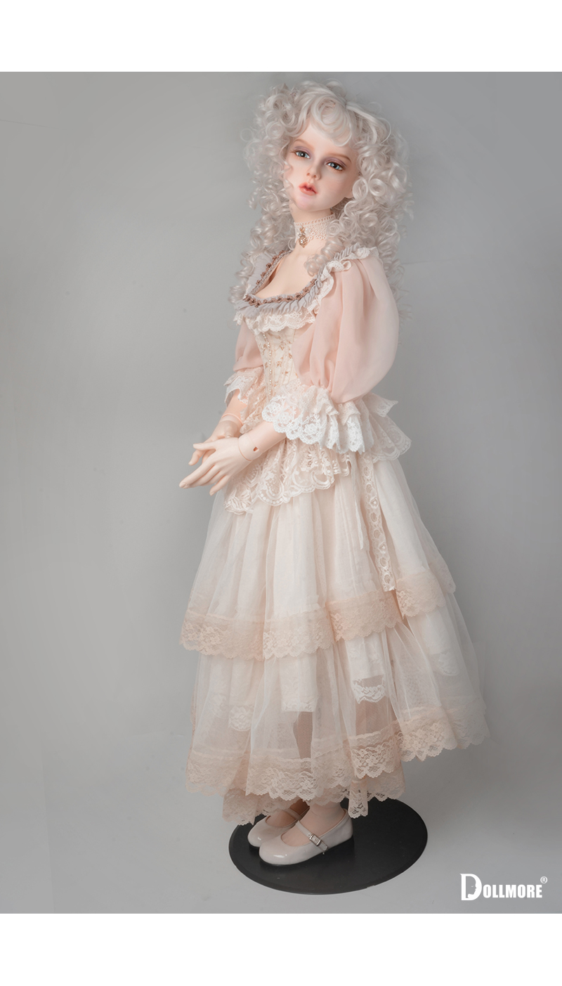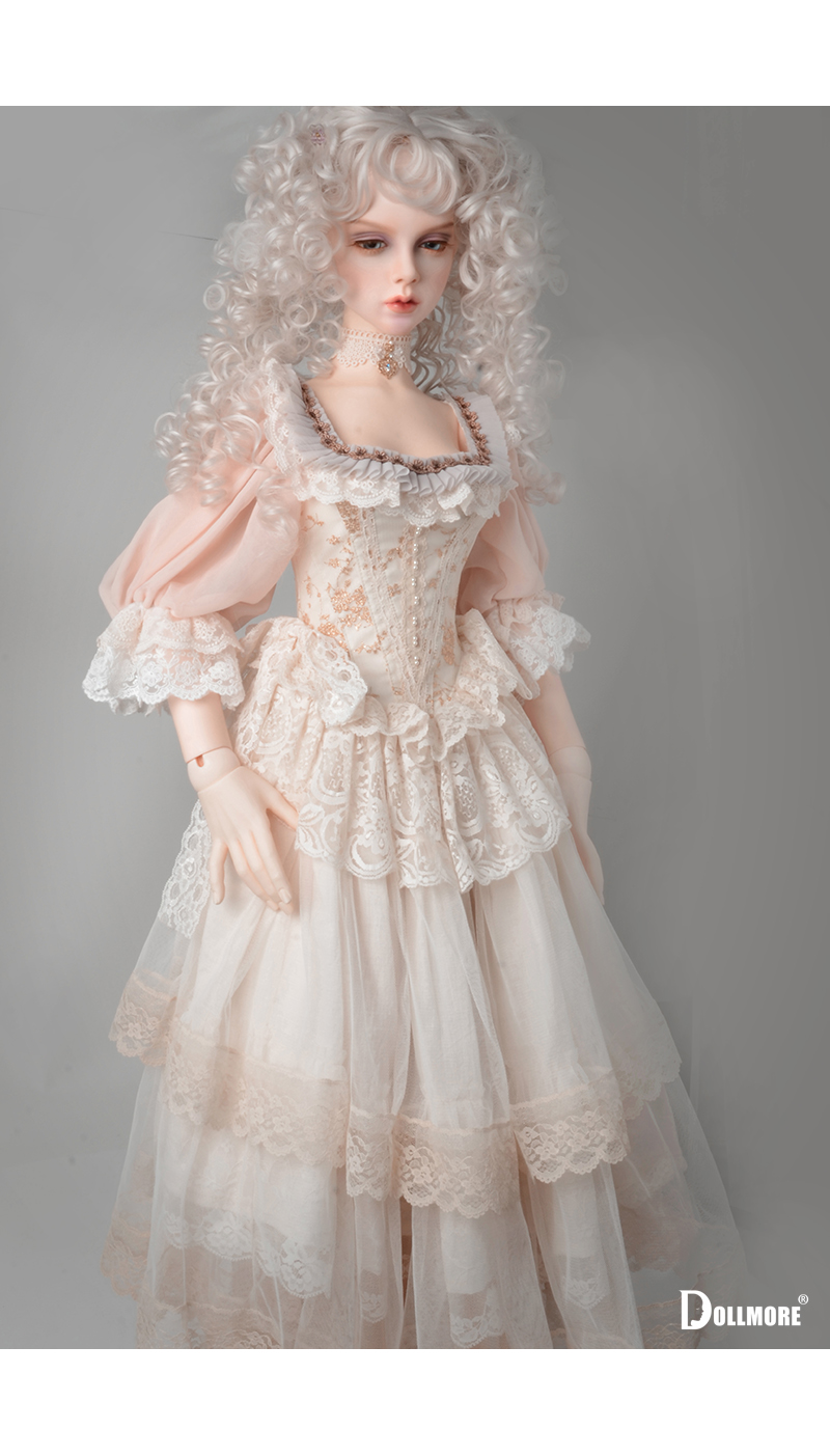 A modern reinterpretation of a classic European aristocratic silhouette, this elegant dress set exudes the romantic allure of a bygone era. Soft pastel beige and rose tones blend together gracefully, evoking the nostalgic beauty of an aged rose in full bloom. The bodice features intricate embroidery and delicate bead embellishments in a corset-inspired design, accentuated by ruffled lace along the neckline that enhances its refined elegance. The voluminous chiffon puff sleeves capture the light softly, emphasizing femininity, while the lace cuffs complete the timelessly graceful look. The skirt is composed of multiple layers of lace and fine tulle, creating a luxurious and flowing silhouette that moves like a gentle whisper. A subtle apricot-toned underlayer paired with cream lace overlays adds warmth and depth, giving the entire ensemble a soft, romantic radiance. * Components: Main dress, lace choker * Model: Trinity Doll F – Dress Up Charlotte – LE20 (Height: 105 cm / approximately 41.3 inches; Head circumference: 13–14 inches) * Features: Premium lace and hand-embroidered bead embellishments / Classic Rococo style / Elegant antique rose-tone color palette True to its name, “Roseline Elegy” captures both the sorrow and beauty of a rose that blooms timelessly within the passage of time. ※ Note: This dress fits all bust sizes of the Trinity Doll F body beautifully. ================================================================================================ 고전적인 유럽 귀족풍 실루엣을 현대적으로 재해석한 드레스 세트입니다. 파스텔 베이지와 로즈빛이 은은하게 어우러져, 마치 오래된 장미의 추억처럼 고혹적인 분위기를 자아냅니다. 상체는 섬세한 자수와 비즈 장식이 어우러진 코르셋 스타일로, 목선을 부드럽게 감싸는 러플 디테일이 우아함을 더합니다. 풍성한 쉬폰 퍼프 소매는 투명한 빛을 머금어 여성스러움을 극대화하며, 끝단의 레이스가 클래식한 아름다움을 완성합니다. 하단의 스커트는 여러 겹의 레이스와 망사로 이루어진 풍성한 레이어 구조로, 움직임에 따라 부드럽게 흩날리는 실루엣이 드라마틱한 인상을 줍니다. 은은한 살구빛 톤의 안감 위에 얹힌 크림 레이스가 로맨틱한 조화를 이루며, 전체적으로 따뜻하고 우아한 빛을 발합니다. * 구성품: 드레스 본체, 레이스 초커. * 모델: Trinity Doll F - Dress Up Charlotte - LE20(Height: 105 cm / Head circumference: 13–14 inch) * 특징: 고급 레이스와 비즈 수공예 장식 / 클래식 로코코 스타일 / 엔틱 로즈톤의 우아한 색조 이 드레스는 ‘로잘린 엘레지(Roseline Elegy)’라는 이름처럼, 시간 속에 피어난 장미의 슬픔과 아름다움을 동시에 담은 작품입니다. ※ 참고: 본 드레스 세트는 트리니티 돌의 가슴 사이즈에 관계없이 모두 아름답게 착용 가능합니다.