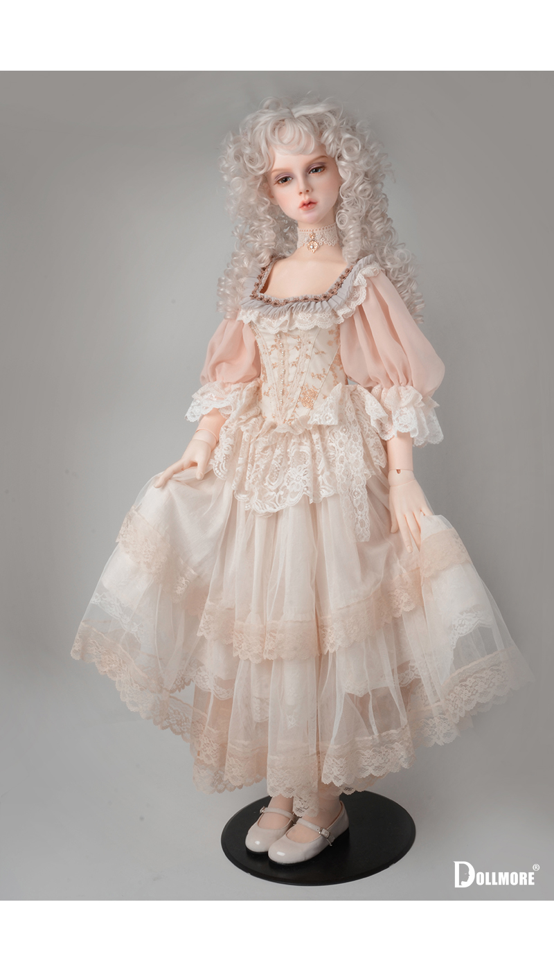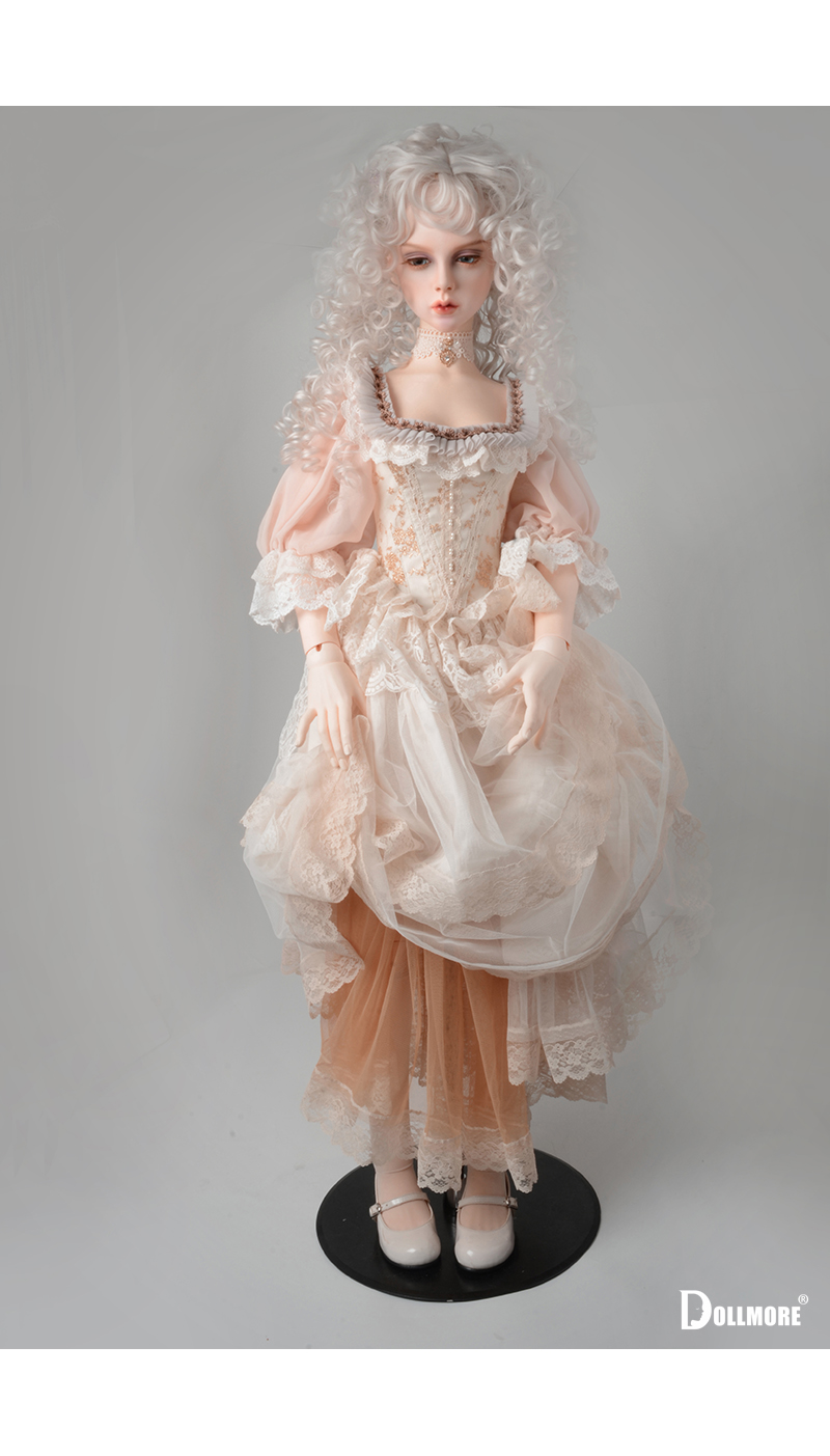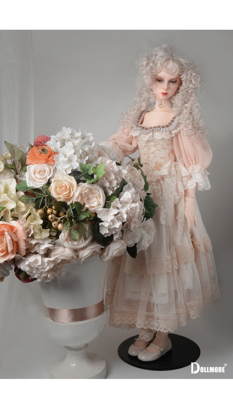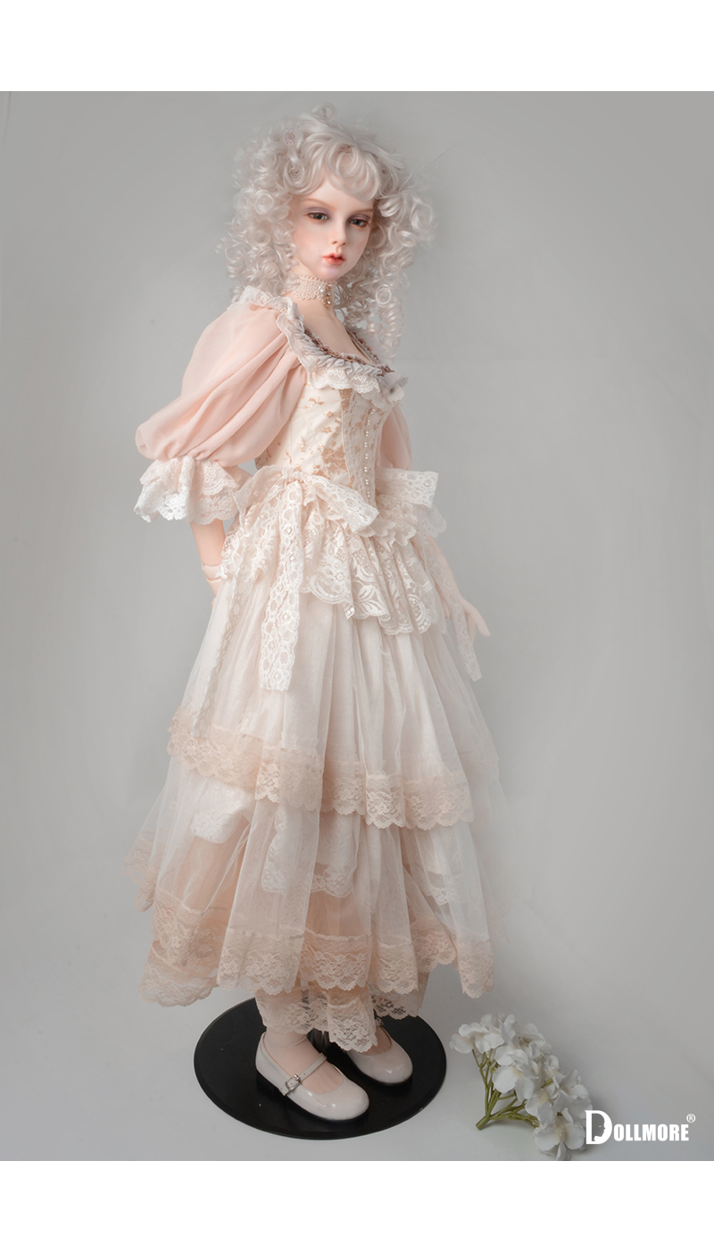 A modern reinterpretation of a classic European aristocratic silhouette, this elegant dress set exudes the romantic allure of a bygone era. Soft pastel beige and rose tones blend together gracefully, evoking the nostalgic beauty of an aged rose in full bloom. The bodice features intricate embroidery and delicate bead embellishments in a corset-inspired design, accentuated by ruffled lace along the neckline that enhances its refined elegance. The voluminous chiffon puff sleeves capture the light softly, emphasizing femininity, while the lace cuffs complete the timelessly graceful look. The skirt is composed of multiple layers of lace and fine tulle, creating a luxurious and flowing silhouette that moves like a gentle whisper. A subtle apricot-toned underlayer paired with cream lace overlays adds warmth and depth, giving the entire ensemble a soft, romantic radiance. * Components: Main dress, lace choker * Model: Trinity Doll F – Dress Up Charlotte – LE20 (Height: 105 cm / approximately 41.3 inches; Head circumference: 13–14 inches) * Features: Premium lace and hand-embroidered bead embellishments / Classic Rococo style / Elegant antique rose-tone color palette True to its name, “Roseline Elegy” captures both the sorrow and beauty of a rose that blooms timelessly within the passage of time. ※ Note: This dress fits all bust sizes of the Trinity Doll F body beautifully. ================================================================================================ 고전적인 유럽 귀족풍 실루엣을 현대적으로 재해석한 드레스 세트입니다. 파스텔 베이지와 로즈빛이 은은하게 어우러져, 마치 오래된 장미의 추억처럼 고혹적인 분위기를 자아냅니다. 상체는 섬세한 자수와 비즈 장식이 어우러진 코르셋 스타일로, 목선을 부드럽게 감싸는 러플 디테일이 우아함을 더합니다. 풍성한 쉬폰 퍼프 소매는 투명한 빛을 머금어 여성스러움을 극대화하며, 끝단의 레이스가 클래식한 아름다움을 완성합니다. 하단의 스커트는 여러 겹의 레이스와 망사로 이루어진 풍성한 레이어 구조로, 움직임에 따라 부드럽게 흩날리는 실루엣이 드라마틱한 인상을 줍니다. 은은한 살구빛 톤의 안감 위에 얹힌 크림 레이스가 로맨틱한 조화를 이루며, 전체적으로 따뜻하고 우아한 빛을 발합니다. * 구성품: 드레스 본체, 레이스 초커. * 모델: Trinity Doll F - Dress Up Charlotte - LE20(Height: 105 cm / Head circumference: 13–14 inch) * 특징: 고급 레이스와 비즈 수공예 장식 / 클래식 로코코 스타일 / 엔틱 로즈톤의 우아한 색조 이 드레스는 ‘로잘린 엘레지(Roseline Elegy)’라는 이름처럼, 시간 속에 피어난 장미의 슬픔과 아름다움을 동시에 담은 작품입니다. ※ 참고: 본 드레스 세트는 트리니티 돌의 가슴 사이즈에 관계없이 모두 아름답게 착용 가능합니다.