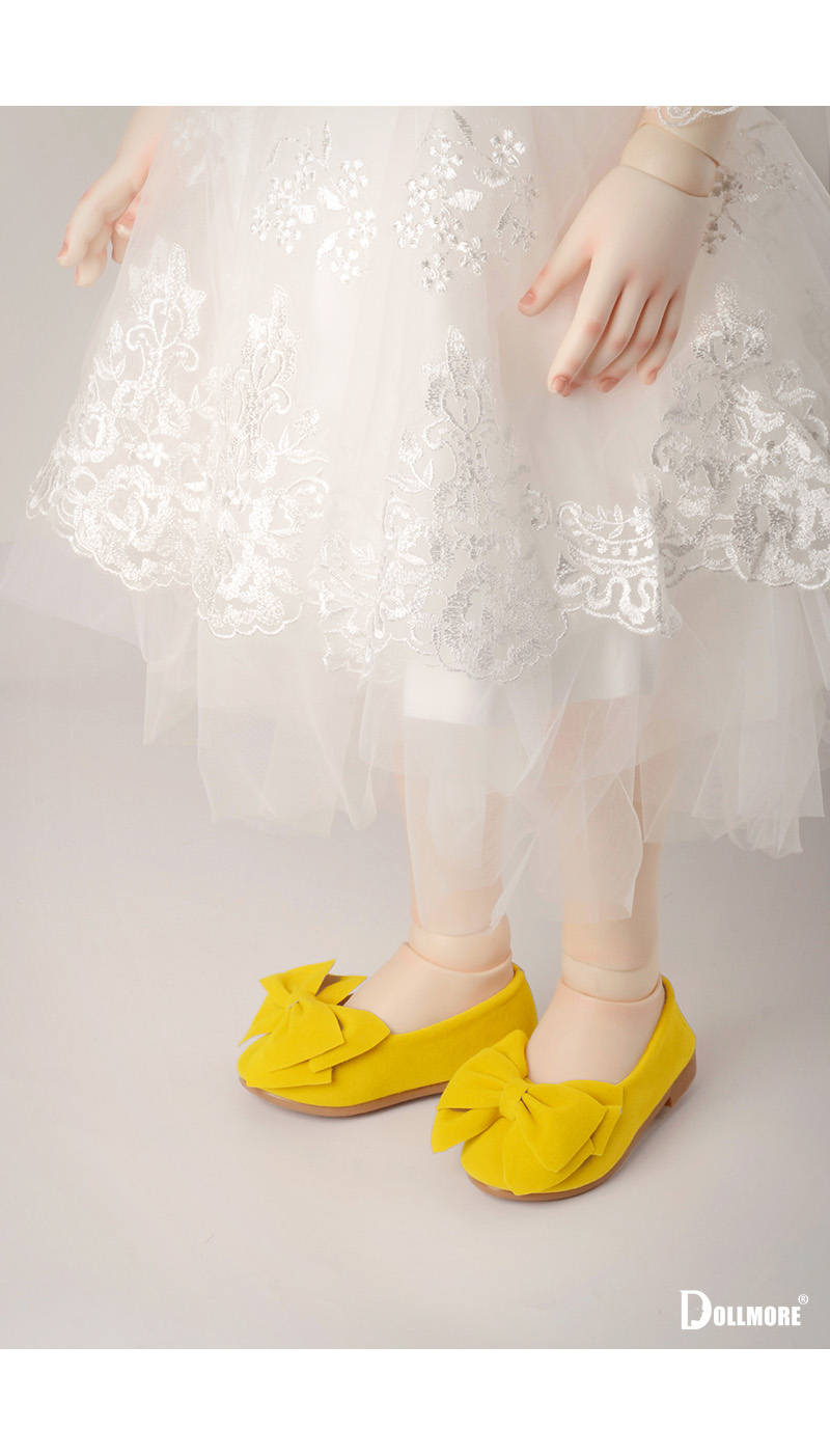 Lusion Doll Shoes - Ribbon Plush Flats Shoes (Yellow)