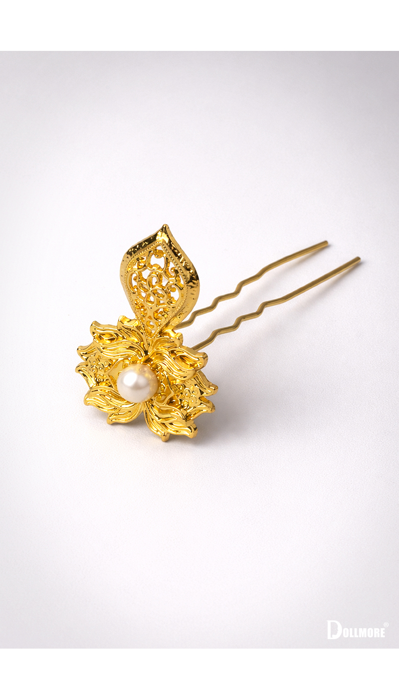 Product Description This is a luxurious hairpin featuring a delicately sculpted classic floral motif accented with softly shimmering pearl details. The finely crafted openwork leaf design is beautifully paired with a voluminous gold flower, crowned at the center with an elegant pearl accent. Together, these details enhance the doll’s facial lines with a refined, graceful, and glamorous impression. This accessory pairs effortlessly with classic, romantic, and antique styles, and is also highly versatile for royal court, fantasy, and goddess-inspired concepts. It is especially well-suited for photo shoots and display styling. Designed with a U-shaped pin structure, it can be securely fixed to a BJD wig, allowing for various styling options such as front accents, top hair decoration, and more. ✔ Product Features - Elegant gold-tone metal hair ornament - Central pearl detail for a timeless, classic mood - Delicate sculpting with three-dimensional detailing - U-shaped hairpin type, easy to secure to BJD wigs ✔ Included : Hairpin × 1 ✔ Usage Notes - Due to the nature of handcrafted production, minor scratches or slight color variations may occur. - Please avoid strong impact and moisture. ✔ Size (US Standard) - Total length: approx. 3.15 inches - Decoration size: approx. 1.26 × 1.77 inches ✔ Model Information - Model 1: Model Doll F – Kate in killer heels – LE10 ( Head circumference: 7–8 inches / Height: approx. 27.6 inches) - Model 2: Trinity Doll F – Dress Up Saraphina – LE10 (Head circumference: 12–14 inches / Height: approx. 41.3 inches ) 섬세하게 조형된 클래식 플라워 모티프와 은은하게 빛나는 펄 장식이 어우러진 고급 헤어핀입니다. 정교한 오픈워크 패턴의 잎 장식과 풍성한 꽃잎 형태의 골드 플라워 중앙에 자리한 펄 디테일이 인형의 얼굴선을 더욱 우아하고 화려하게 연출해 줍니다. 클래식, 로맨틱, 앤틱 스타일은 물론 궁중풍·판타지·여신 콘셉트까지 폭넓게 매치 가능하며 촬영용 소품이나 전시용 연출 아이템으로도 매우 뛰어납니다. U자형 핀 구조로 제작되어 가발에 안정적으로 고정할 수 있으며 정면 장식, 헤어 탑 장식 등 다양한 연출이 가능합니다. ✔ 상품 특징 - 고급스러운 골드 컬러 메탈 헤어 장식 - 중앙 펄 포인트로 클래식한 분위기 연출 - 섬세한 조형과 입체적인 디테일 - BJD 가발에 고정이 쉬운 U자형 헤어핀 타입 ✔ 구성 : 헤어핀 1점 ✔ 사용 안내 - 수작업 공정 특성상 미세한 스크래치, 색감 차이가 있을 수 있습니다. - 강한 충격이나 습기에 주의해 주세요. * 총길이 : 8cm * 장식크기 : 3.2cm X 4.5cm * 모델1 : Model Doll F - Kate in killer heels - LE10 (머리둘레 7-8인치/키 70cm) * 모델2 : Trinity Doll F - Dress Up Saraphina - LE10 (머리둘레 12-14인치/키 105cm)