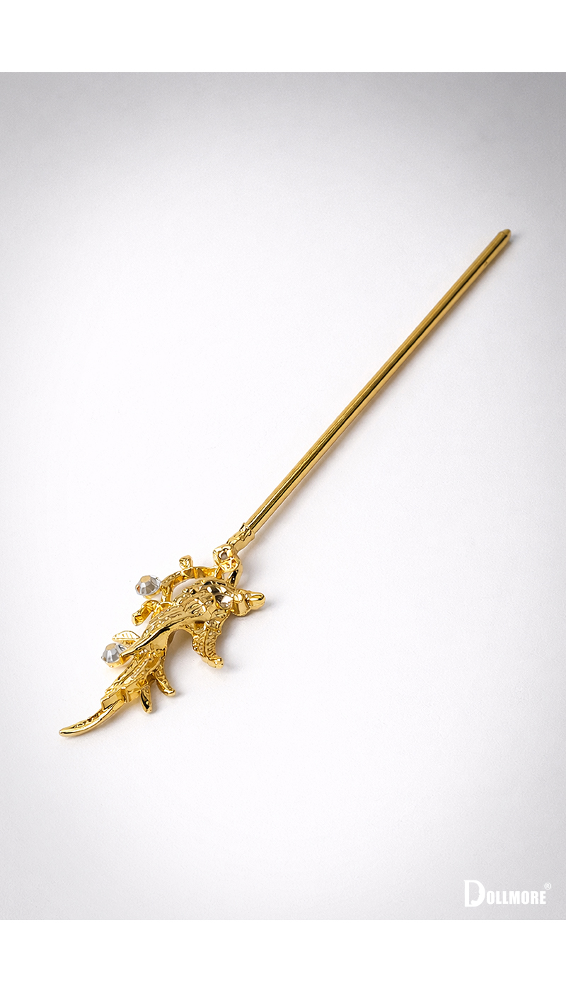 This is an elegant and distinctive Gold-tone metal binyeo hairpin featuring a dynamic mythical creature motif accented with clear crystal details. The sculpted creature design, with flowing wings and a finely textured body, creates a sense of movement and fantasy, while the crystal points catch the light softly, adding a refined sparkle. The cool Gold finish enhances the sharp, sophisticated impression and beautifully highlights the sculptural details. The long, slim hairpin structure allows it to be securely inserted into a doll wig, making it suitable for a variety of hairstyles such as updos, braided styles, twisted hair, or voluminous arrangements. When styled, the decorative top sits gracefully above the hairline, adding a striking focal point without overwhelming the look. This binyeo pairs especially well with fantasy, goddess, mythical, gothic, and elegant dress-up concepts, making it an excellent choice for photo shoots, display styling, or special themed presentations. ✔ Included : Hairpin × 1 piece ✔ Care Instructions - Due to the nature of hand-crafted production, minor scratches or slight color variations may occur. - Please avoid strong impact and excessive moisture. ✔ Size (US / Inches) - Total Length: 6.3 in (approx.) ✔ Model Information - Model 1: Model Doll F – Kate in killer heels – LE10 ( Head circumference: 7–8 inches / Height: approx. 27.6 inches) - Model 2: Trinity Doll F – Dress Up Saraphina – LE10 (Head circumference: 12–14 inches / Height: approx. 41.3 inches ) 섬세한 골 메탈 바디에 신비로운 상상의 생명체 모티프가 더해진 개성적이면서도 우아한 비녀 헤어 장식입니다. 날개를 펼친 듯한 역동적인 실루엣과 정교하게 표현된 바디 디테일이 어우러져 마치 판타지 세계의 한 장면을 옮겨 놓은 듯한 강렬하고 몽환적인 분위기를 연출해 줍니다. 곳곳에 세팅된 투명 크리스탈 장식은 빛을 받으면 은은하게 반짝이며 전체 디자인에 고급스러운 포인트를 더해 줍니다. 가늘고 길게 뻗은 비녀 형태로 가발에 안정적으로 꽂아 고정할 수 있어 업스타일, 브레이드 헤어, 트위스트 스타일, 볼륨감 있는 헤어 연출 등 다양한 스타일에 잘 어울립니다. 헤어 위에 장식이 자연스럽게 드러나 촬영 시에도 시선을 사로잡는 포인트 아이템으로 활용하기 좋습니다. 판타지 · 여신 · 신화 · 고딕 · 드레스업 콘셉트에 특히 잘 어울리며, 촬영용 소품이나 전시 연출용으로도 활용도가 매우 높은 비녀 헤어 장식입니다. ✔ 구성 : 헤어핀 1점 ✔ 사용 안내 - 수작업 공정 특성상 미세한 스크래치, 색감 차이가 있을 수 있습니다. - 강한 충격이나 습기에 주의해 주세요. * 총길이 :17cm * 모델1 : Model Doll F - Kate in killer heels - LE10 (머리둘레 7-8인치/키 70cm) * 모델2 : Trinity Doll F - Dress Up Saraphina - LE10 (머리둘레 12-14인치/키 105cm)