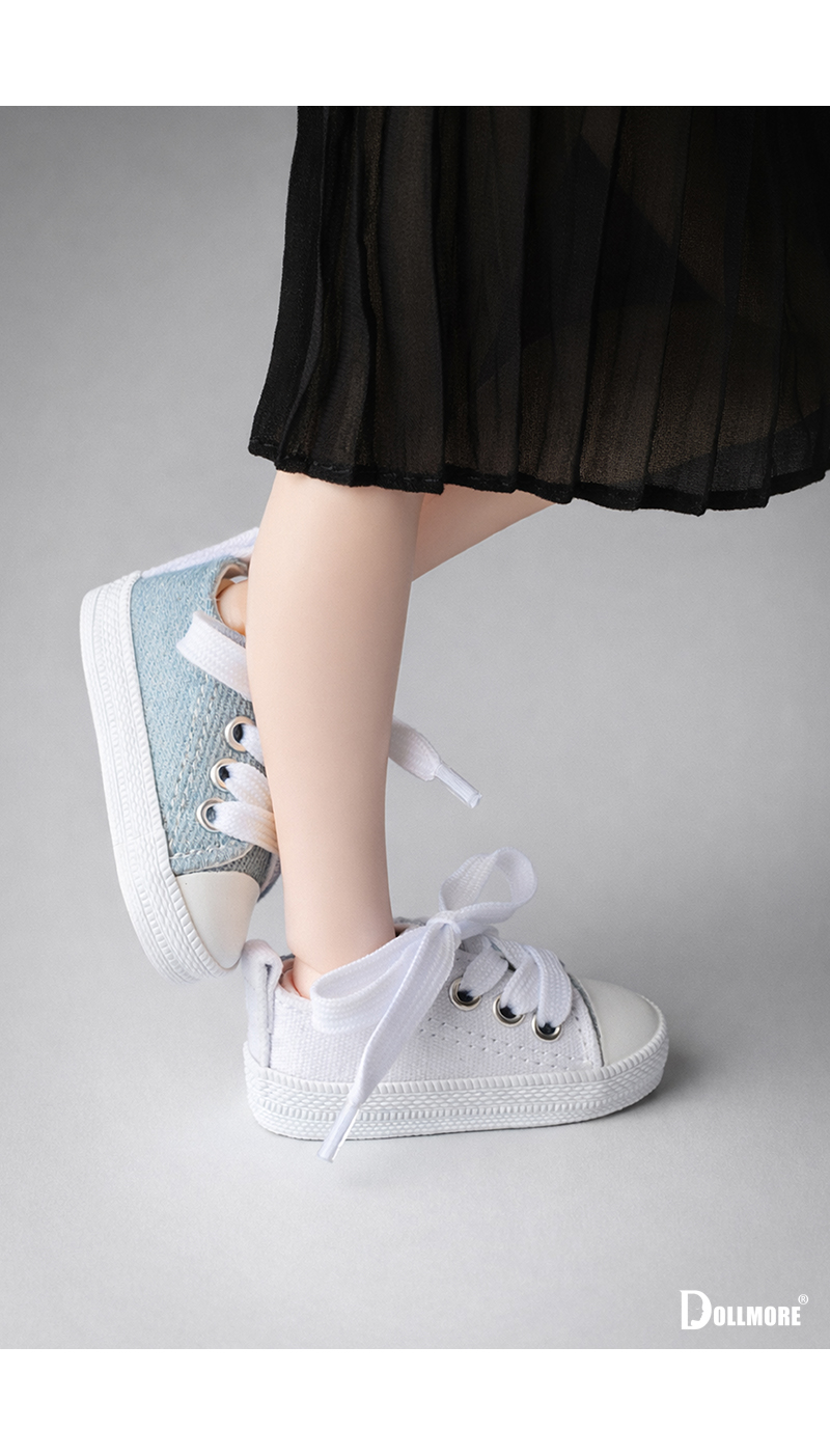There is simple and lovely sneakers. It fits well to most of MSD dolls. Quality of this sneakers isn't very well, so we sell it with low price. You may find out a little bond stain on the sneakers. It goes well with casual clothes. * Included: 1 pair of shoes * Size: 3 cm * 7.3 cm * Model : Kid Dollmore Girl - Pink Blossom Cora - LE10 ( Tall : 43 cm , Foot Length : 6 cm) 탄탄한 면조직의 사랑스런 스니커즈입니다. 신발의 양쪽 색상이 다른 배색이라서 세련되고 멋지네요. 저렴한 퀄리티로 그리 본드마감이나 전체적인 마감이 깔끔하지 못하지만 스타일이 이쁘고 사랑스러워요~^^ 캐주얼복장에 매우 잘어울립니다. * Size : 3cm X 7.3cm * 모델 : Kid Dollmore Girl - Pink Blossom Cora - LE10 (키 : 43cm /발크기 : 6cm)