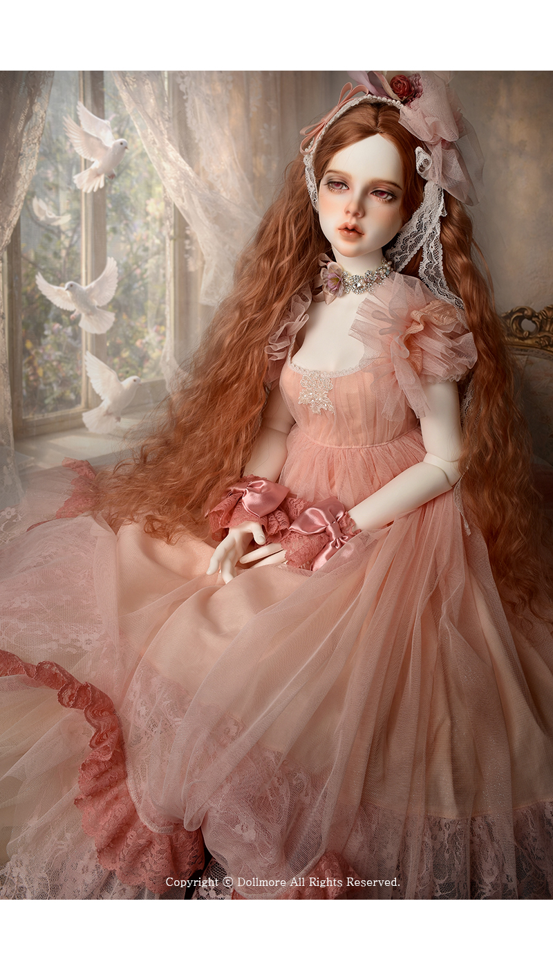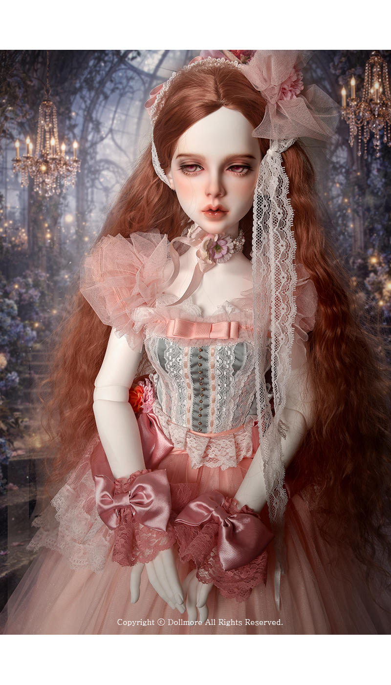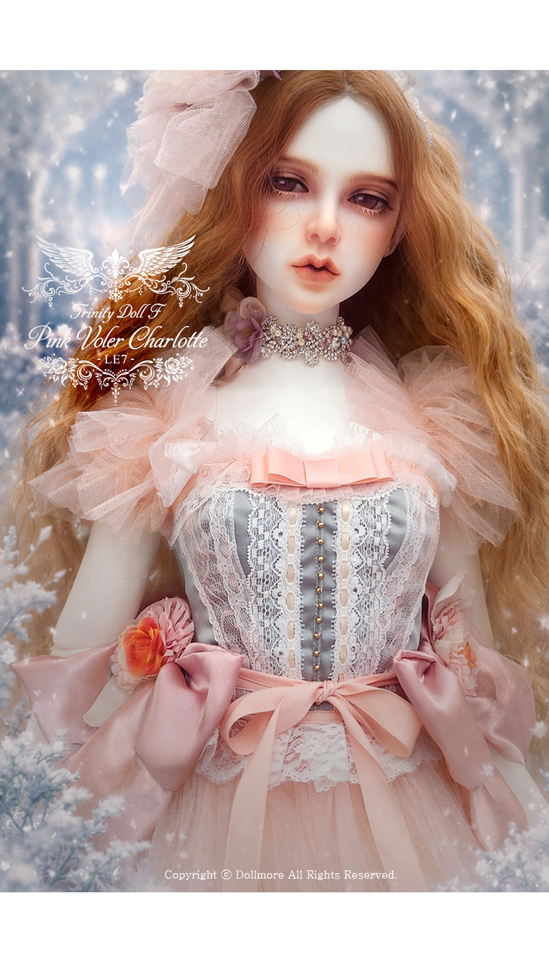 * Special Limited Edition- LE7 * Trinity Doll F - Pink Voler Charlotte - LE7 ------------------------------------------------- Into a clear and crystal glass I pour a translucent pink wine. It splashes softly against the rim, rosy droplets scattering into the spring breeze. When a lucid light fills my heart to its brim, I shall understand— Spring does not arrive from somewhere far away. Quietly, it awakens from within me....... ------------------------------------------------- Please send your warm love to the newly awakened Charlotte. Reborn with a clear and tranquil breath, she was photographed in a luminous white skin tone that gently holds the light. Within her translucent radiance rests a soft blush of rose-tinted emotion. From her delicate gaze to her graceful lines, to the subtle changes in mood as the light shifts— every moment of hers is truly special. Like a new season quietly unfolding, Charlotte has awakened once more. We sincerely ask for your kind interest and loving support for her pure new beginning. * Outfit Includes : Dress, Corset, Waist Decorative Skirt, Two Petticoats, Hair Accessory, Wrist Cuffs, Choker Necklace, and Stockings. * Eyes : 24mm Round Glass Eyes (250101A) * Wig : (13-14) Selena Sobazu Long Wig (R.Brown) * Shoes : Trinity Doll F - Zicoo Shoes (D Pink) * Eyelashes : Eyelashes for dolls - 2020JYH-10 (Dark brown)