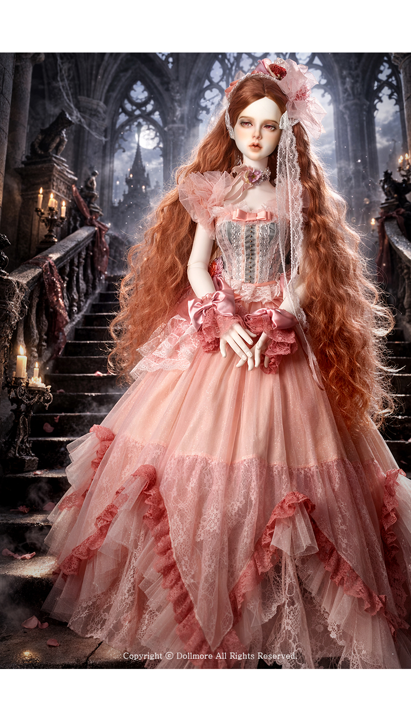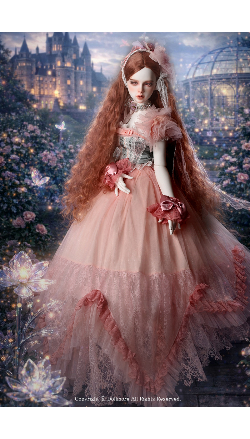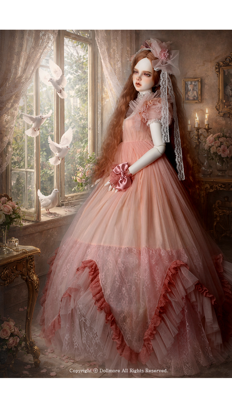 * Special Limited Edition- LE7 * Trinity Doll F - Pink Voler Charlotte - LE7 ------------------------------------------------- Into a clear and crystal glass I pour a translucent pink wine. It splashes softly against the rim, rosy droplets scattering into the spring breeze. When a lucid light fills my heart to its brim, I shall understand— Spring does not arrive from somewhere far away. Quietly, it awakens from within me....... ------------------------------------------------- Please send your warm love to the newly awakened Charlotte. Reborn with a clear and tranquil breath, she was photographed in a luminous white skin tone that gently holds the light. Within her translucent radiance rests a soft blush of rose-tinted emotion. From her delicate gaze to her graceful lines, to the subtle changes in mood as the light shifts— every moment of hers is truly special. Like a new season quietly unfolding, Charlotte has awakened once more. We sincerely ask for your kind interest and loving support for her pure new beginning. * Outfit Includes : Dress, Corset, Waist Decorative Skirt, Two Petticoats, Hair Accessory, Wrist Cuffs, Choker Necklace, and Stockings. * Eyes : 24mm Round Glass Eyes (250101A) * Wig : (13-14) Selena Sobazu Long Wig (R.Brown) * Shoes : Trinity Doll F - Zicoo Shoes (D Pink) * Eyelashes : Eyelashes for dolls - 2020JYH-10 (Dark brown)
