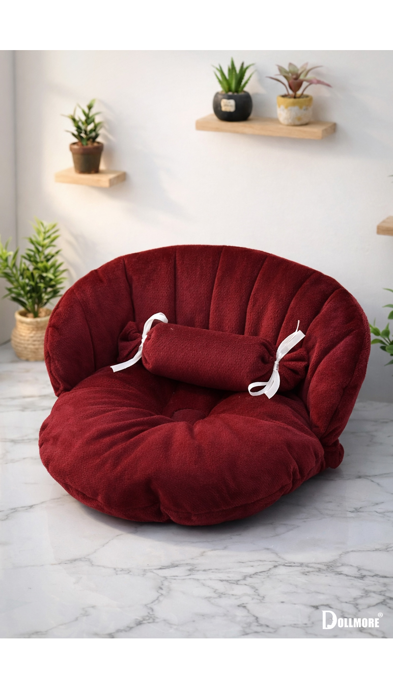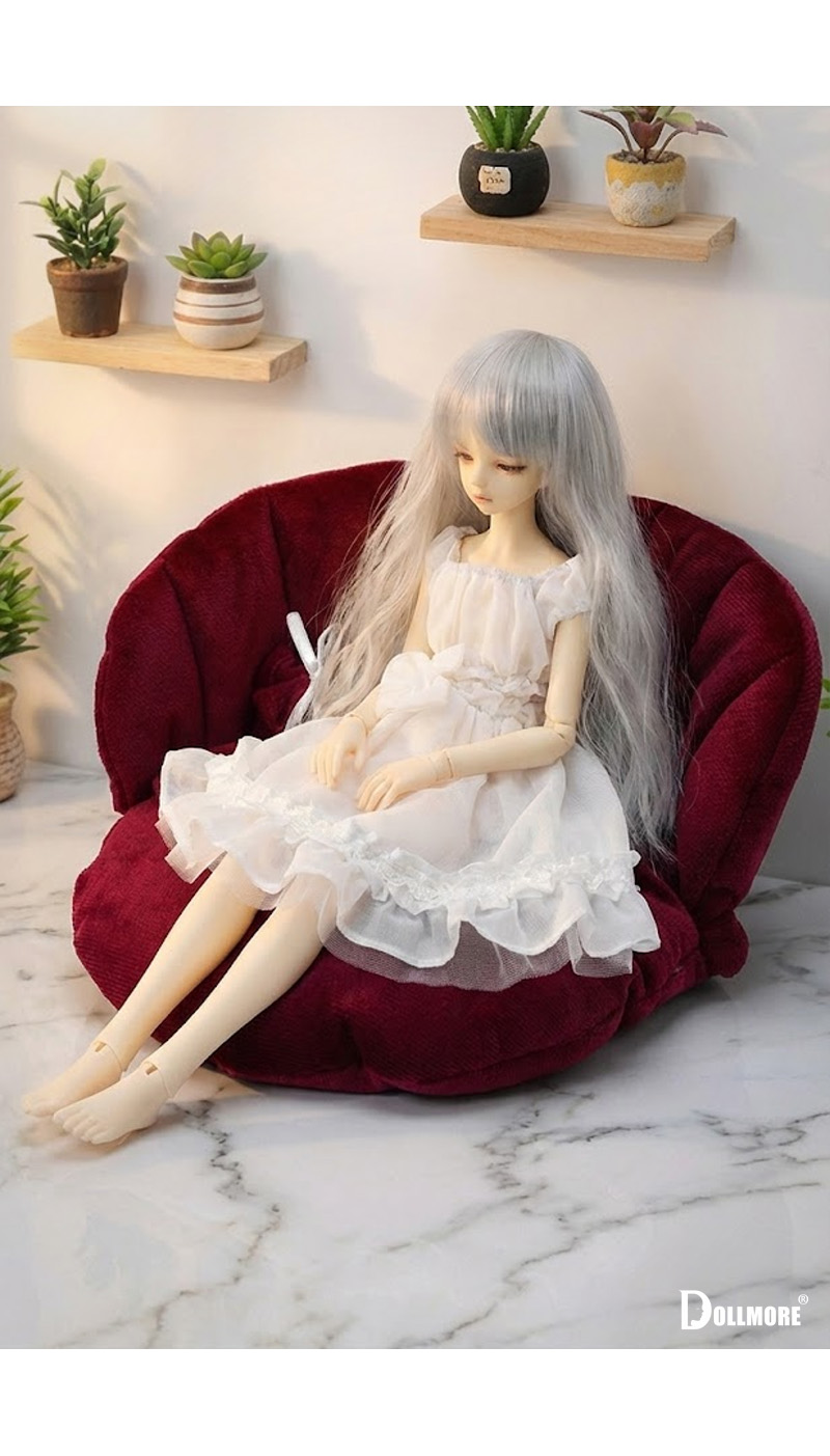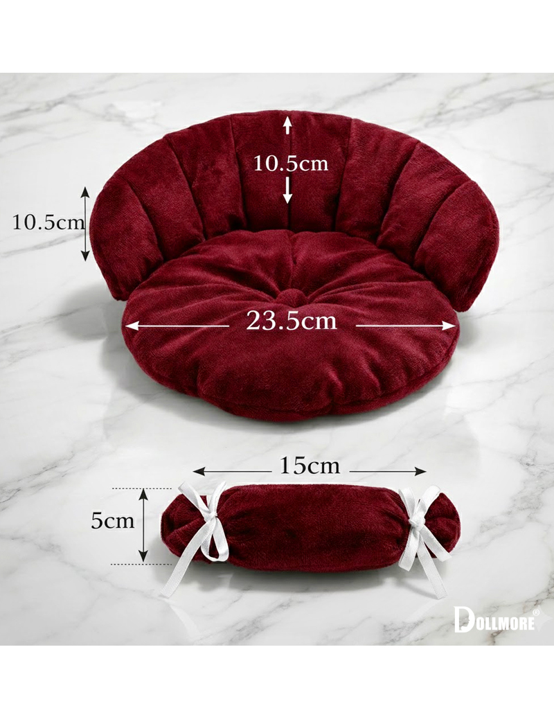 This velvet sofa-style cushion is specially designed for MSD size dolls. The rounded, petal-inspired backrest gently embraces the doll, while the soft, plush seat provides stable and comfortable support, creating an elegant and antique-inspired atmosphere. A matching cylindrical bolster cushion adorned with white ribbon ties is included, adding a romantic and charming finishing touch. Designed in a natural proportion for MSD and 40–45 cm (approx. 15.7–17.7 in) dolls, it pairs beautifully with white dresses, vintage outfits, and classic-themed photography. ✨ Features ✔ Premium velvet fabric ✔ Sculpted dimensional backrest design ✔ Ribbon-tied bolster cushion included ✔ Soft and supportive seating ✔ Ideal for photography, display, and showcase styling 📏 Size ✔ Overall Width: approx. 23.5 cm (9.25 in) ✔ Backrest Height: approx. 10.5 cm (4.1 in) ✔ Bolster Cushion: approx. 15 cm × 5 cm (5.9 in × 2 in) Due to handmade production, slight measurement variations may occur. 📦 Includes • Sofa Cushion • Matching Bolster Cushion 📸 Model Reference * Dollmore Kid – Semi-Closed Eye “Pado”/ Height: 43 cm (16.9 in)
