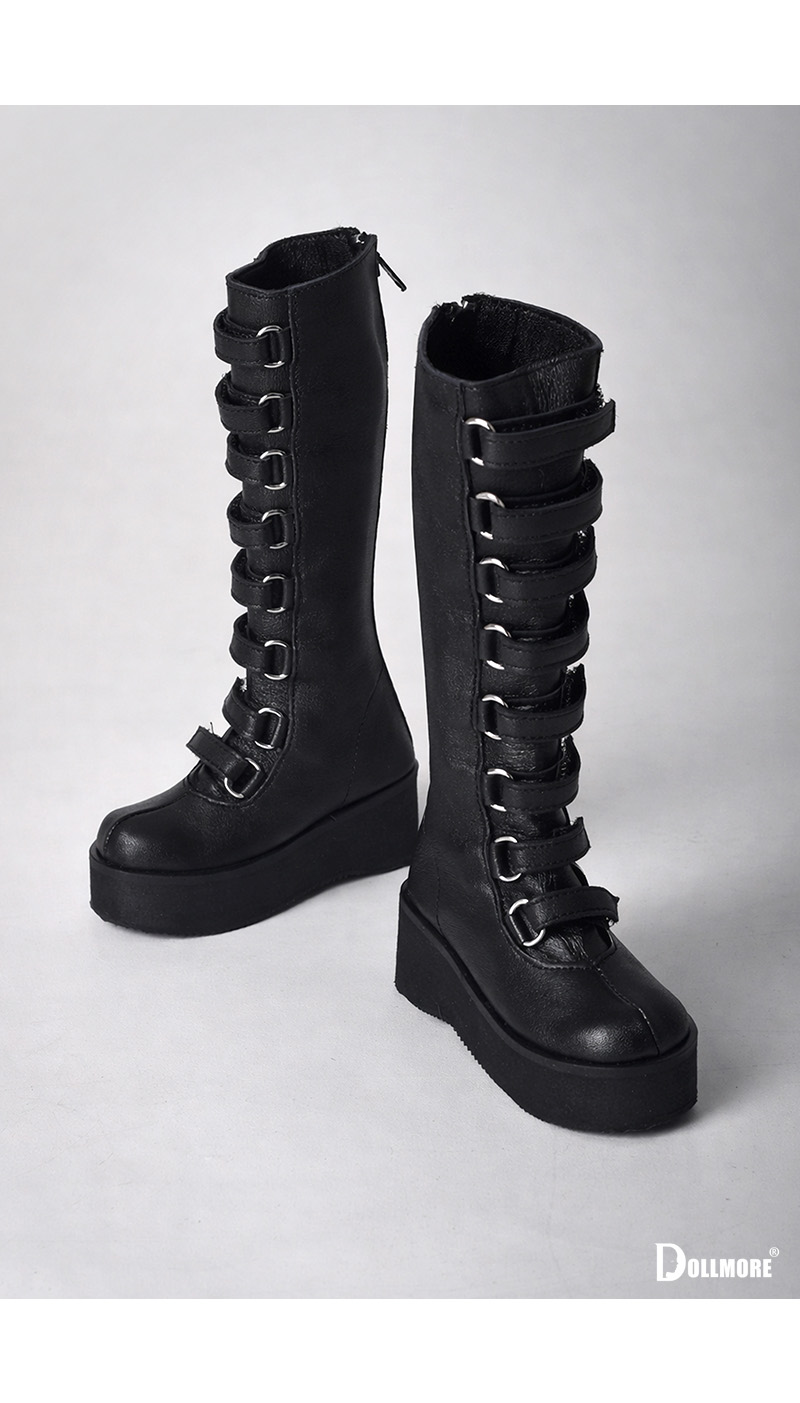 🖤 Product Description These genuine leather platform long boots are designed to complete a bold and striking look. Carefully crafted in Korea from high-quality natural leather, the soft yet structured texture creates a refined and luxurious finish. The front strap details with silver ring accents add a chic, modern edge, while the balanced platform sole provides stability and a beautifully proportioned silhouette. The long boot length enhances the elegant proportions of Model Doll and 65–70cm dolls, making them especially perfect for gothic, chic, or street-style concept photography. A side zipper closure allows for easy and convenient wear. ✨ Details * Includes: One pair of boots * Size: 9.5 × 4 × 17.5 cm / (Approx. 3.74 × 1.57 × 6.89 inches) * Model: Model Doll F – Yohwa (Height: 67 cm / 26.4 inches) ✔ Fits well on Dollmore Adam and Model Doll Girl bodies.