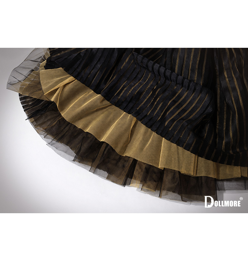 This is a beautiful skirt produced in a limited quantity of only 7 pieces. A Trinity-size atelier skirt that harmonizes a calm dark tone with elegant pleated fabric woven with subtle golden lines. The matte upper fabric and the voluminous pleated silhouette create a classic and refined shape. A soft tulle layer inside adds graceful volume, completing an elegant and sophisticated look. As the skirt moves, delicate gold stripes and the tulle layer subtly reveal themselves, creating an antique yet mysterious atmosphere. With its atelier-inspired design, this skirt pairs beautifully with a wide range of Trinity outfits. * Components: 1 Skirt/ (Doll is not included.) * Model Doll: Trinity Doll F - Forest Dream Dress Up Marienne - LE10 /Height: 105 cm (approx. 41.3 inches) 오직 7벌 한정으로 소량 제작된 아름다운 스커트입니다. 은은한 골드 라인이 흐르는 플리츠 원단과 차분한 다크 톤이 조화를 이루는 트리니티 사이즈 아틀리에 스커트입니다. 상단의 매트한 원단과 풍성한 플리츠 라인이 클래식한 실루엣을 만들며, 안쪽에는 부드러운 튤 레이어를 더해 풍성하고 우아한 볼륨감을 완성하였습니다. 움직임에 따라 자연스럽게 드러나는 골드 스트라이프와 튤 레이어가 엔틱하면서도 신비로운 분위기를 연출합니다. 아틀리에 감성이 담긴 디자인으로 다양한 트리니티 의상과 아름답게 어울립니다. * 구성품 : 스커트 1점 * 모델돌 : Trinity Doll F - Forest Dream Dress Up Marienne - LE10 (키 : 105cm)