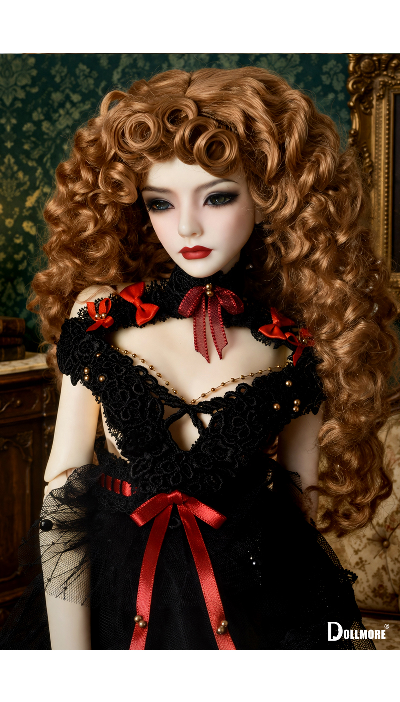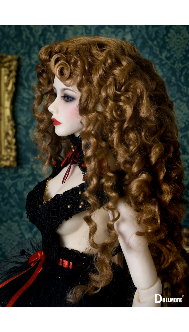“Curls that hold the light, an elegance suspended in quiet time.” Crafted with precision from Synthetic Mohair, known for its refined texture and subtle sheen, this antique-inspired wig embodies timeless sophistication. Layered over a softly flowing warm brown base, intricately defined curls create rich volume and dimension, bringing together classical elegance with a dramatic presence. The full yet lightweight silhouette cascades naturally, enhancing the contours of the face while maintaining a graceful and effortless flow from every angle. When touched by light, the warm brown tone reveals a gentle, luminous glow— perfectly complementing antique interiors and elevating the doll’s overall presence with a sense of refined luxury. Whether styled with classic dresses, gothic ensembles, or romantic looks, this piece serves as a signature atelier wig that completes a wide range of concepts with elegance. ✨ Product Info * Model : Zaoll - Red Fanatique ; Luv - LE10 (Head circumference: 8–9 inch) + Girl Body * Includes : Wig × 1