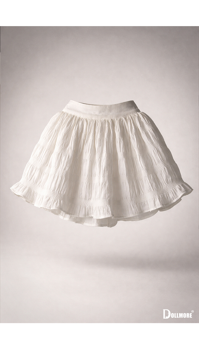 This skirt is made of cotton fabric and features a full, voluminous silhouette. Soft crinkled texture throughout the skirt creates a natural yet romantic atmosphere. Its wide, beautifully flared shape is especially charming, giving the outfit a lovely and graceful volume when worn. Even without pettipants or an underskirt, it still holds a rich and full silhouette, making it easy to style on its own. The light cotton fabric has a soft and natural texture, and the skirt spreads gently with movement, adding an elegant and feminine touch. Its clean white color pairs beautifully with a variety of tops, making it a charming piece that can be styled for looks ranging from sweet and girlish to classic and refined. * Included: Skirt 1 * Model Doll : Trinity Doll F - Small Orgel; Eugenia - LE10 (Height : 105 cm / approx. 41.3 inches) 면 소재로 제작된 풍성한 실루엣의 스커트입니다. 전체적으로 잔잔한 주름 디테일이 잡혀 있어 내추럴하면서도 로맨틱한 분위기를 아름답게 표현해줍니다. 폭이 넓고 풍성하게 퍼지는 라인이 매력적이며, 착용했을 때 자연스럽고 사랑스러운 볼륨감을 만들어줍니다. 특히 속바지나 속치마를 따로 받쳐 입지 않아도 충분히 풍성한 실루엣이 살아나 더욱 편하게 스타일링하실 수 있습니다. 가벼운 면 원단 특유의 부드럽고 내추럴한 질감이 돋보이며, 움직일 때마다 자연스럽게 퍼지는 스커트 라인이 우아하고 여성스러운 느낌을 더해줍니다. 깨끗한 화이트 컬러가 다양한 상의와 잘 어우러져, 소녀감성부터 클래식한 분위기까지 폭넓게 연출하실 수 있는 매력적인 아이템입니다. * 구성품 : 스커트 1 * 모델돌 : Trinity Doll F - Small Orgel; Eugenia - LE10 (키 : 105CM)