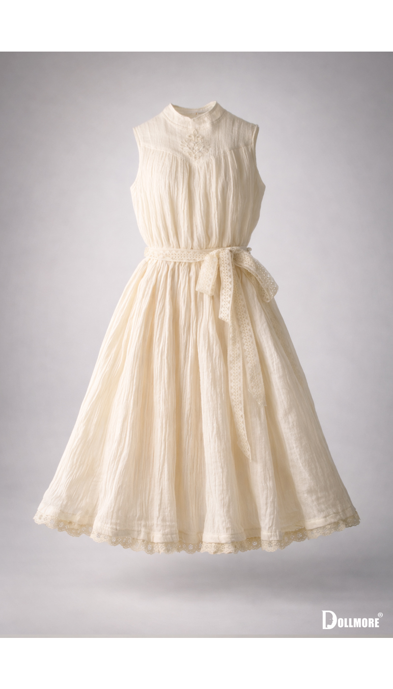 A dress for Trinity Doll, crafted from soft cotton fabric in a gentle cream ivory shade. Made from light and soft cotton, this dress is beautifully accented with delicate pleats and lace details, creating a pure and graceful mood. The neatly raised neckline and the naturally flared full skirt enhance a girlish yet elegant silhouette, while the lace ribbon at the waist adds a romantic touch. Rather than being overly ornate, the design conveys a quiet and classic beauty, evoking the image of afternoon tea in a garden and creating a poetic, refined atmosphere. The natural texture of soft cotton and the softly flowing silhouette make this dress especially charming. It is lovely enough to wear on its own, and can also be styled with a variety of headdresses or shoes to create an even more delicate and romantic look. * Includes: Dress 1 * Model Doll : Trinity Doll F - Small Orgel; Eugenia - LE10 (Height : 105 cm / approx. 41.3 inches) 은은한 크림 아이보리 컬러의 면 원단으로 제작된 트리니티돌 전용 원피스입니다. 가볍고 부드러운 코튼 소재 위에 섬세한 주름 디테일과 레이스 장식이 조화롭게 어우러져 맑고 청초한 분위기를 아름답게 표현해줍니다. 단정하게 올라오는 네크라인과 자연스럽게 퍼지는 풍성한 스커트 라인은 소녀스럽고 우아한 실루엣을 한층 더 돋보이게 해주며, 허리 부분의 레이스 리본 장식이 로맨틱한 포인트가 되어줍니다. 전체적으로 화려하기보다는 고요하고 클래식한 아름다움이 느껴지는 디자인으로, 정원 속 티타임을 떠올리게 하는 서정적이고 품격 있는 무드를 연출하실 수 있습니다. 부드러운 면 특유의 내추럴한 질감과 잔잔하게 흐르는 실루엣이 매우 매력적이며, 단독으로 착용해도 충분히 아름답고 다양한 헤드드레스나 슈즈와 매치하여 더욱 사랑스럽고 섬세한 스타일링을 완성하실 수 있습니다. * 구성 : 원피스 1 * 모델돌 : Trinity Doll F - Small Orgel; Eugenia - LE10 (키 : 105CM)