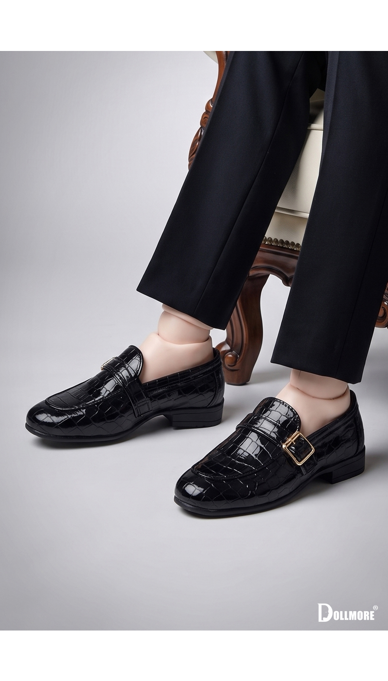 These black loafers for Trinity feature a refined and classic mood with a sophisticated presence. Crafted in a croc-textured material with a subtle glossy finish, they add a strong and polished accent to any styling on their own. The clean silhouette and slim lines create an even more urban and elegant impression. The loafer design that gently wraps over the instep is accented with a side belt detail, adding a stylish point to its classic look. The combination of black color and a gold-tone buckle completes a calm yet luxurious atmosphere. These shoes pair naturally with a wide range of outfits such as slacks, suits, shirts, and coats, making them suitable not only for formal styling but also for modern and chic coordinated looks. They are a versatile item that enhances Trinity’s refined and distinguished image. From daily styling to special photo shoots, dressy looks, and classic concept coordination, these loafers can be used in many different ways. * Includes: 1 pair of shoes * Size: 17.5 cm × 6.5 cm × 7 cm (Approx. 6.89 in × 2.56 in × 2.76 in) * Model: Trinity Doll M – Adrian Marcus of Aurelius Knightfall – LE10 (Height: 48.03 in (122 cm) / Foot Length: 6.30 in (16 cm))