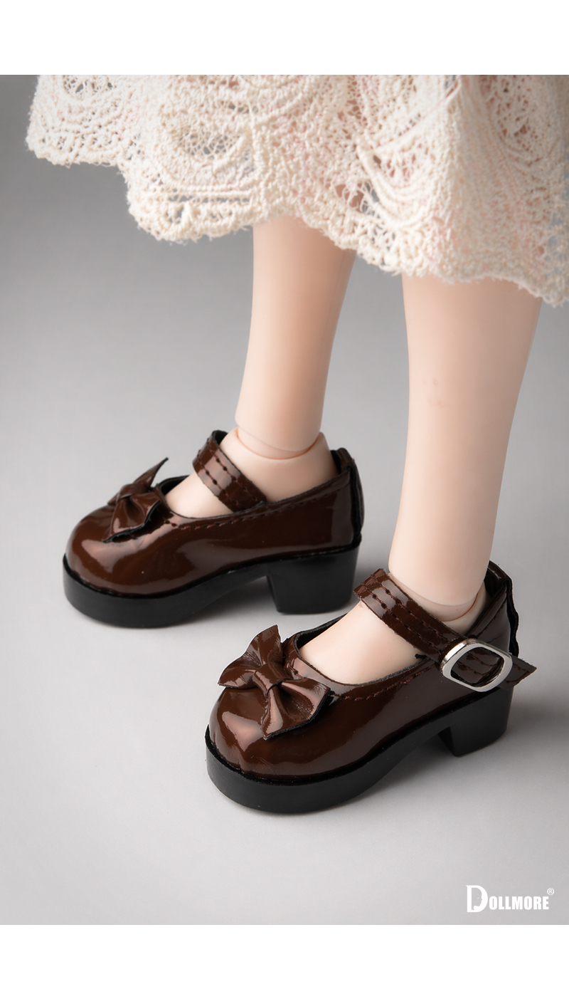 home > SHOES > MSD&Kid (6~7.5cm) > MSD - Elara Ribbon Shoes (Enamel Brown)