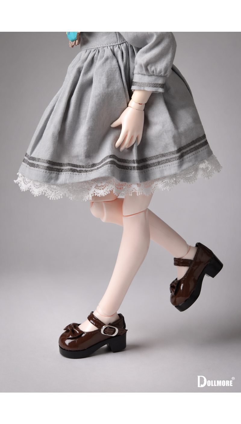 These basic Mary Jane-style shoes are designed for MSD size dolls and are available in three colors: brown, black, and white. Made of faux patent leather with a soft glossy finish, they offer both a lovely charm and a neat, polished look. The ribbon detail on the toe adds a cute yet classic accent. The strap detail gently secures the foot, while the clean silhouette makes them easy to match with a wide variety of outfits. With a moderate heel height and a rounded, softly shaped toe line, these shoes create a lively and adorable mood for MSD size dolls. They are a versatile item that pairs beautifully with many styles, including basic dresses, school looks, casual outfits, and classic ensembles. Brown gives a warm and vintage feel, black offers a crisp and refined classic appeal, and white adds a clean and bright touch, allowing for a range of styling options depending on the mood you want to create. These MSD size Mary Jane shoes are recommended for anyone looking for a cute, versatile, and easy-to-style basic pair of doll shoes. * Size: 6.4 cm × 2.8 cm × 3.5 cm (Heel height: 1 cm) * US Size (approx.): 2.52 in × 1.10 in × 1.38 in (Heel height: 0.39 in) * Model: Kid Dollmore Girl – Mono (Height: 17.1 in /Foot Length: 2.36 in)
