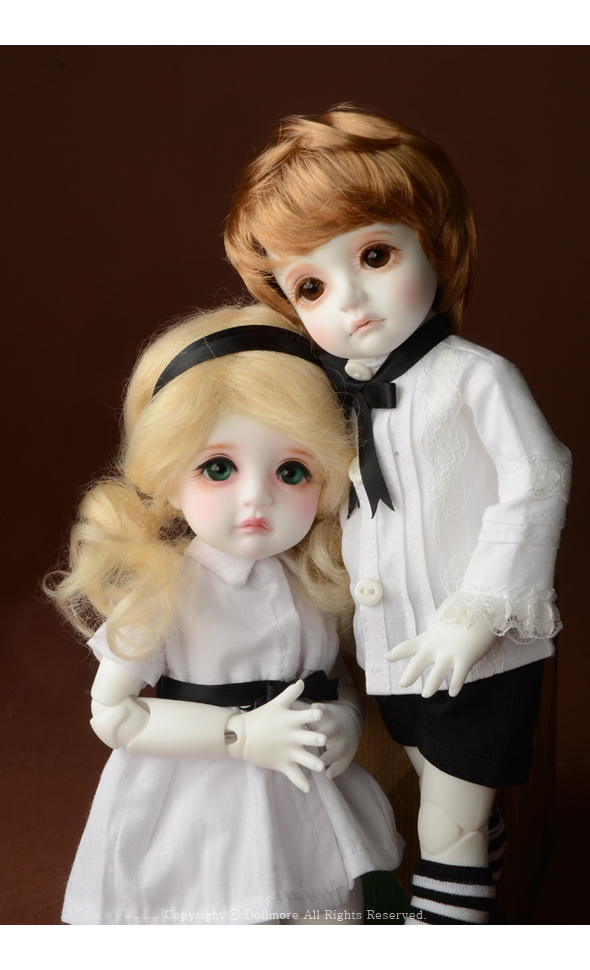 --------------------------------------------------------------------- * Style Tip - Clothes : Dear Doll Size - Neora Shirt (White) - Wig : (7) Enfant Short Cut (Carrot) (7) Enfant Short Cut (Brown) - Eyes : Meister Glass Eyes 12mm (Brown(B) : All of these items should by seperately. They will not ship together. * Doll on the photo including makeup. If you want to receive a doll face like the doll on the photo, we suggest you select default make up option. << order and shipping info >> * In process: 50~80 days We may need more than 80 days depending on options, order time or the circumstances of the manufacturer. *All purchase of this doll is final. It is impossible to change doll or refund doll after when we start to make dolls. << body size >> - Height: 26.5cm - Head :17cm (6-7inch sized wigs fit well) - Eyes : 12mm - Neck : 6cm - Bust : 13.5cm - Shoulders : 6.5cm - Waist :13cm - Hip : 14.5cm - Foot : 3.7cm - From shoulders to fingertip : 10.5cm - From shoulders to foot : 13cm - From hips to foot : 11cm ---------------------------------------------------------- * Payment method 1. Paypal - Dollmore will send you an invoice via paypal.^^ help@dollmore.net 2. Eximbay (direct credit card payment) 3. Bank transfer. - Bank name: standard chartered bank korea limited - Account: 431-20-243375 - Recipient: lee eun young - Bank tel: 82- 2- 521- 9252 - Bank address : standard chartered bank korea limited 1675-1 Seochodong Seochogu Seoul 137-070 Korea ( Gyodaeyeok Br. ) - SWT code : SCBLKRSE --------------------------------------------------- * Design Registration : 2006-50002 * Design Patent: 0162757 * Sculpture: Go Jiyun |